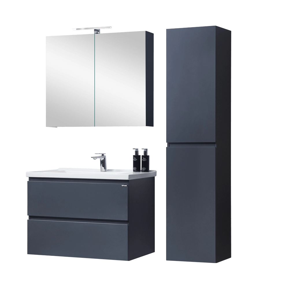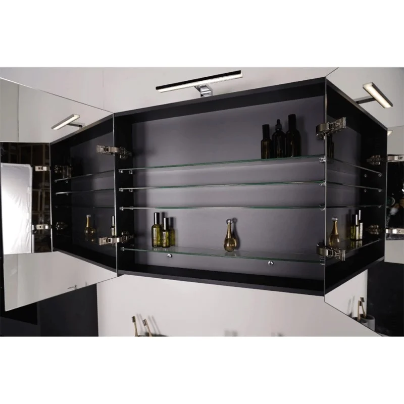 • Зеркальный шкаф(4 полки) с подстветкой • Цвет: Графитовый матовый PU(покраска PU(полиуретан))