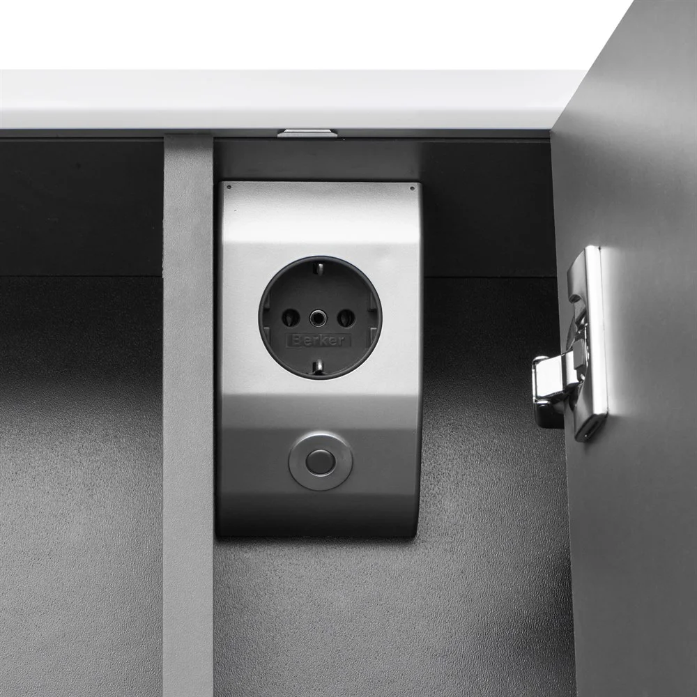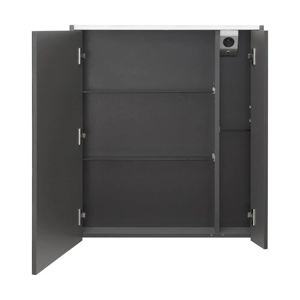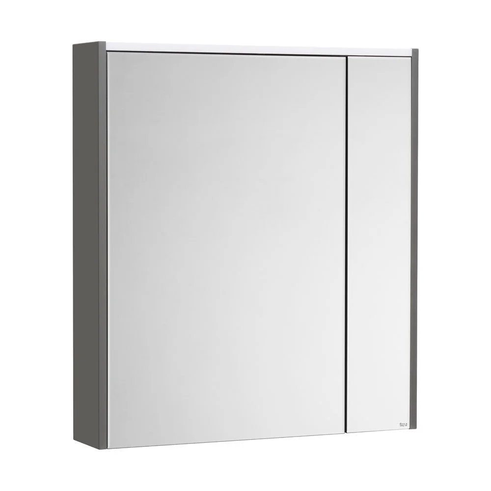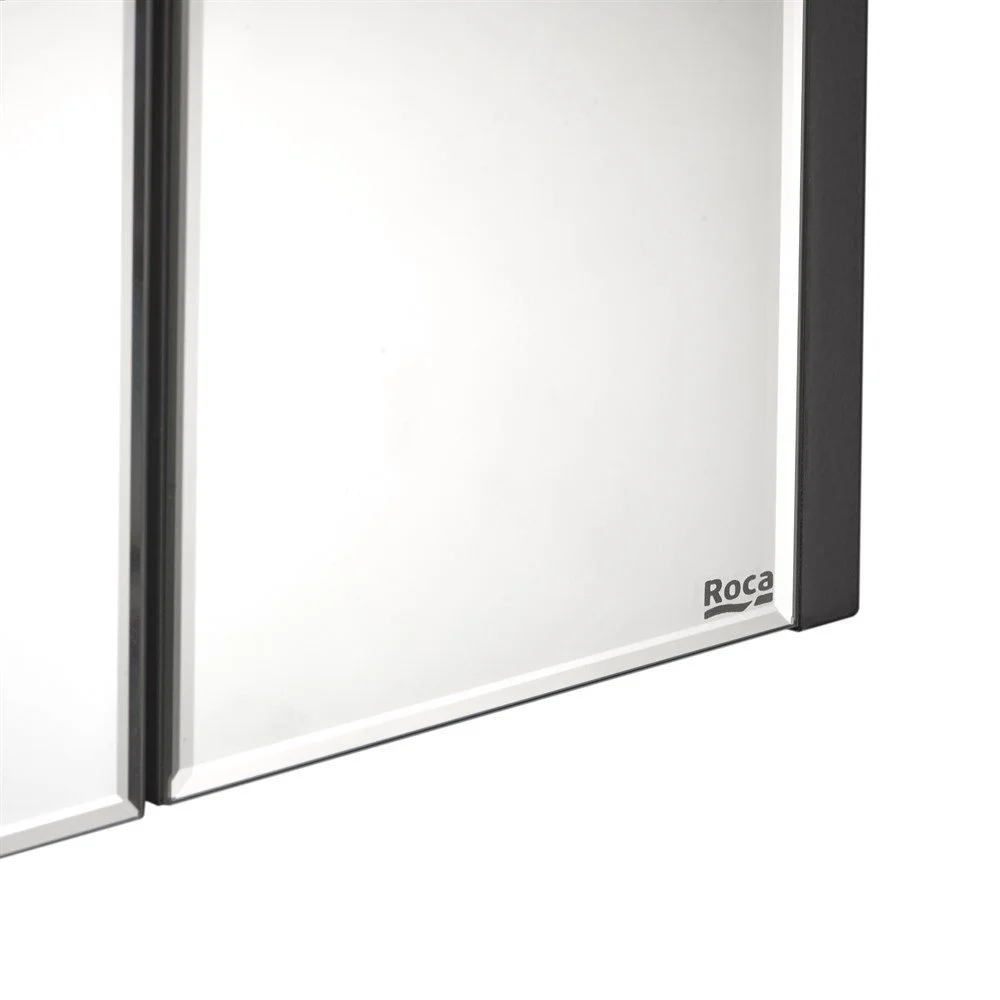 Зеркальный шкаф Ronda в современном стиле от испанского бренда Roca, выполненный из высококачественной влагостойкой ЛДСП и МДФ, с LED-подсветкой, сенсорным выключателем с диммером, розеткой, регулируемыми по высоте стеклянными полочками и петлями с плавным доводом