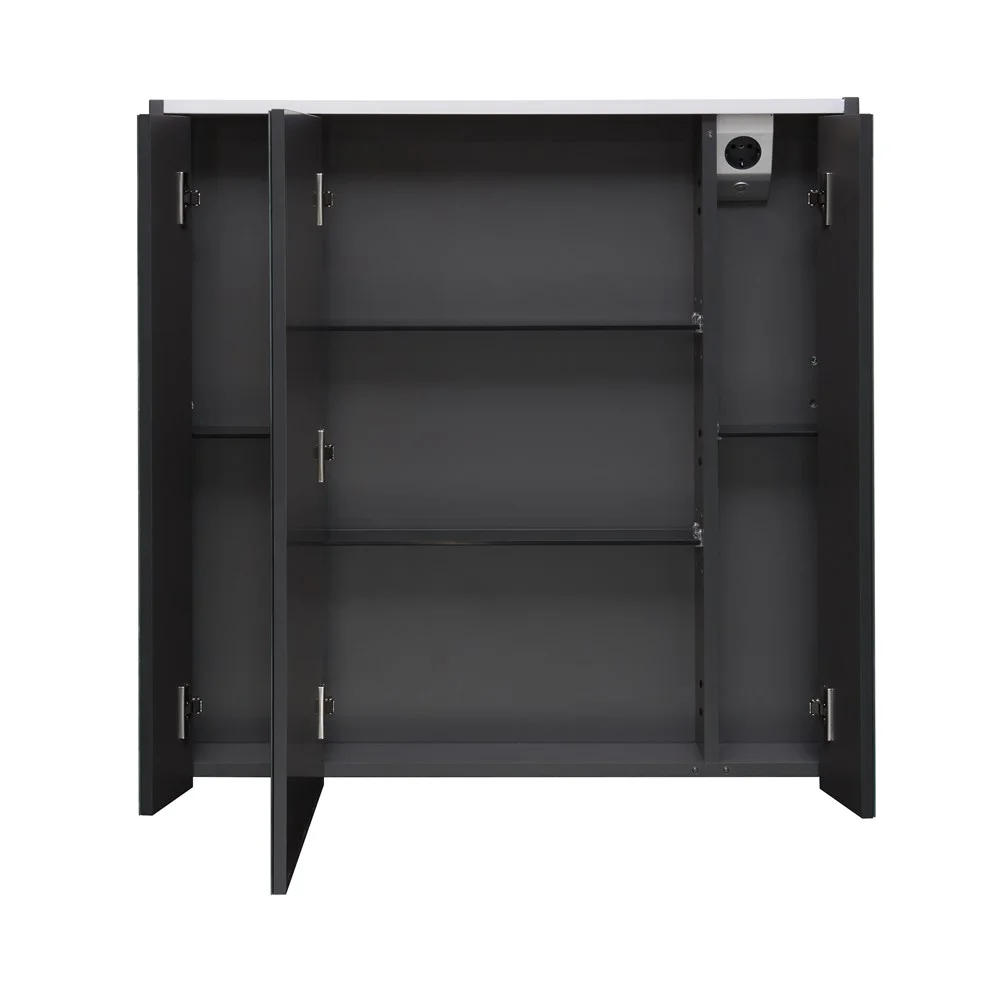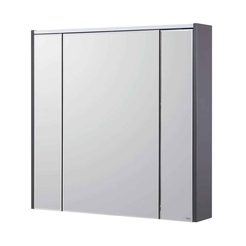 Зеркальный шкаф Ronda в современном стиле от испанского бренда Roca, выполненный из высококачественной влагостойкой ЛДСП и МДФ, с LED-подсветкой, сенсорным выключателем с диммером, розеткой, регулируемыми по высоте стеклянными полочками и петлями с плавным доводом