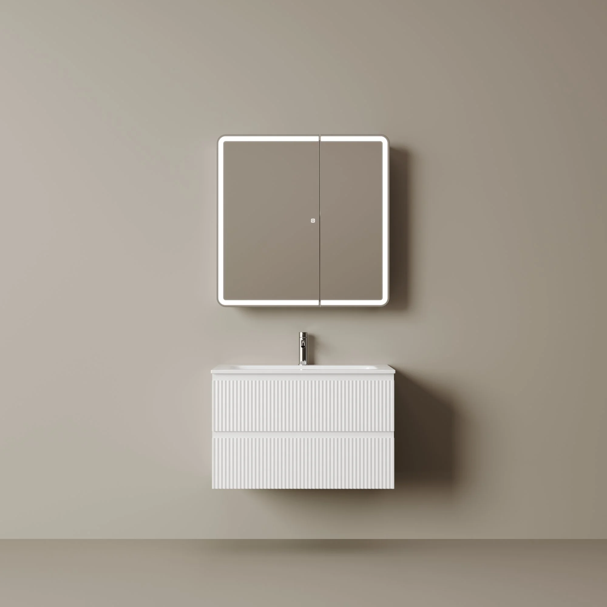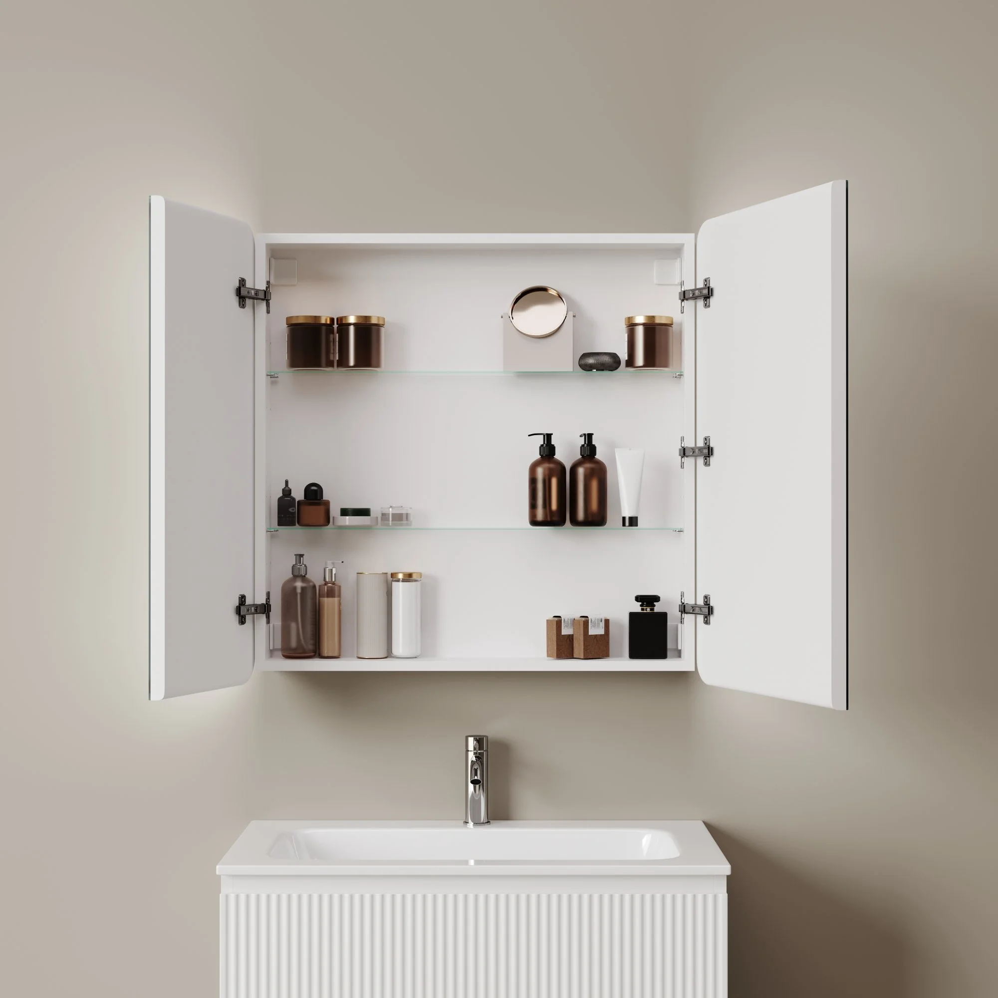 LED подсветка 6000К, сенсор вкл/ выкл, 2 полки из стекла, комплект креплений