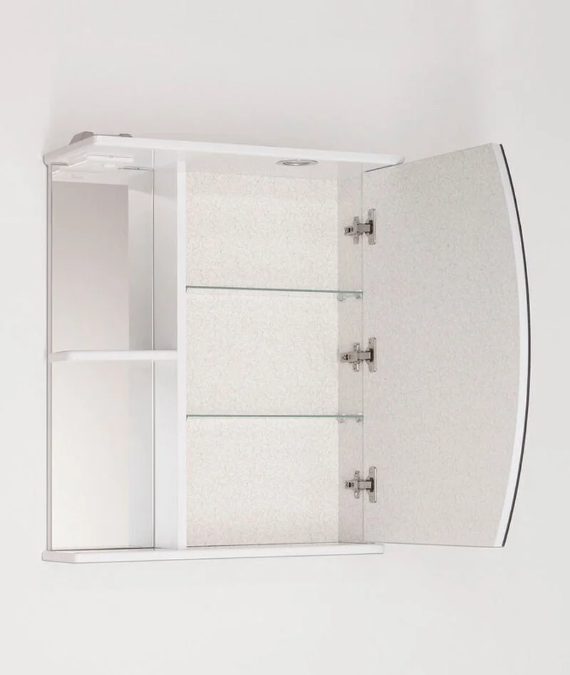 Зеркало-шкаф бренда "Style Line" коллекции "Камелия 60/С" с высокоточной обработкой кромки фацетом и подсветкой. Фурнитура - хром. Кромка зеркала "Камелия 60/С" зашлифована, что защищает от порезов. Лазерная гравировка фирменного логотипа. Край полочек имеет трапецевидную еврокромку. Эксклюзивный декор "Луино" - ламинация внутренней стороны изделия