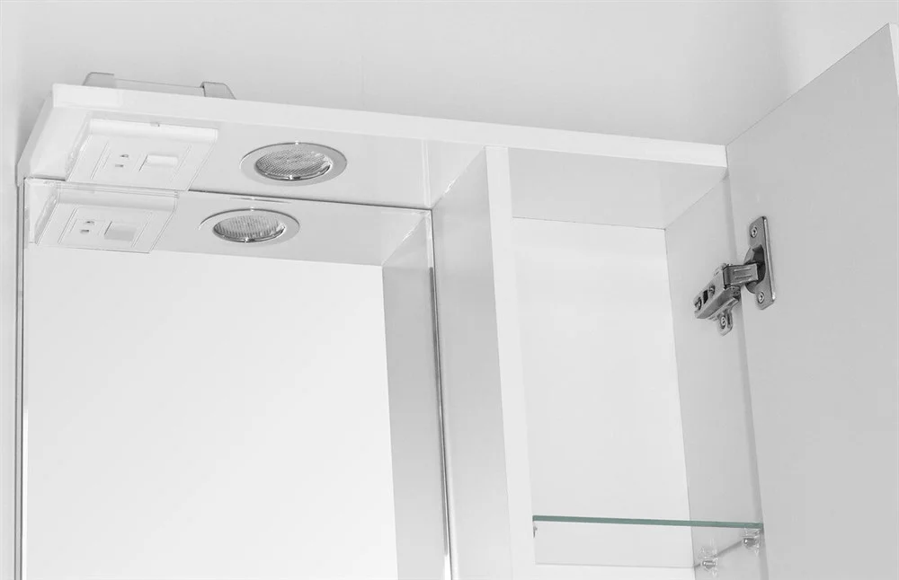 Зеркальный шкаф Style Line коллекции "Канна" с подсветкой; стеклянные полки с еврокромкой и прозрачными полкодержателями Hefele; лазерная гравировка фирменного логотипа; встроенные светильники в шкафах комплектуются выключателем, розеткой и трансформатором. Высокоточная обработка кромки фацетом 10 мм придает изделию законченный вид и защищает от порезов. Боковины изделий в пленке в цвет фасадов