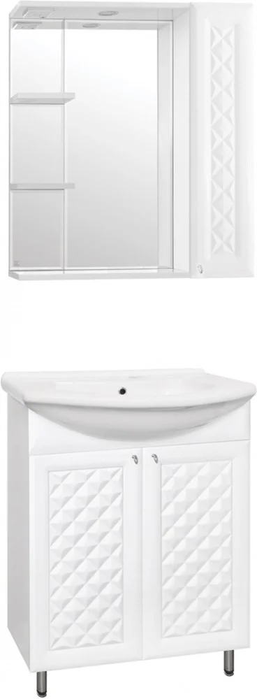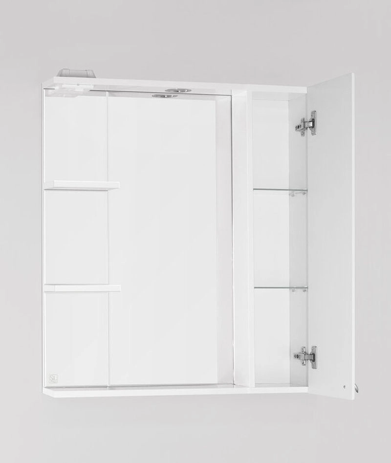 Зеркальный шкаф Style Line коллекции "Канна" с подсветкой; стеклянные полки с еврокромкой и прозрачными полкодержателями Hefele; лазерная гравировка фирменного логотипа; встроенные светильники в шкафах комплектуются выключателем, розеткой и трансформатором. Высокоточная обработка кромки фацетом 10 мм придает изделию законченный вид и защищает от порезов. Боковины изделий в пленке в цвет фасадов