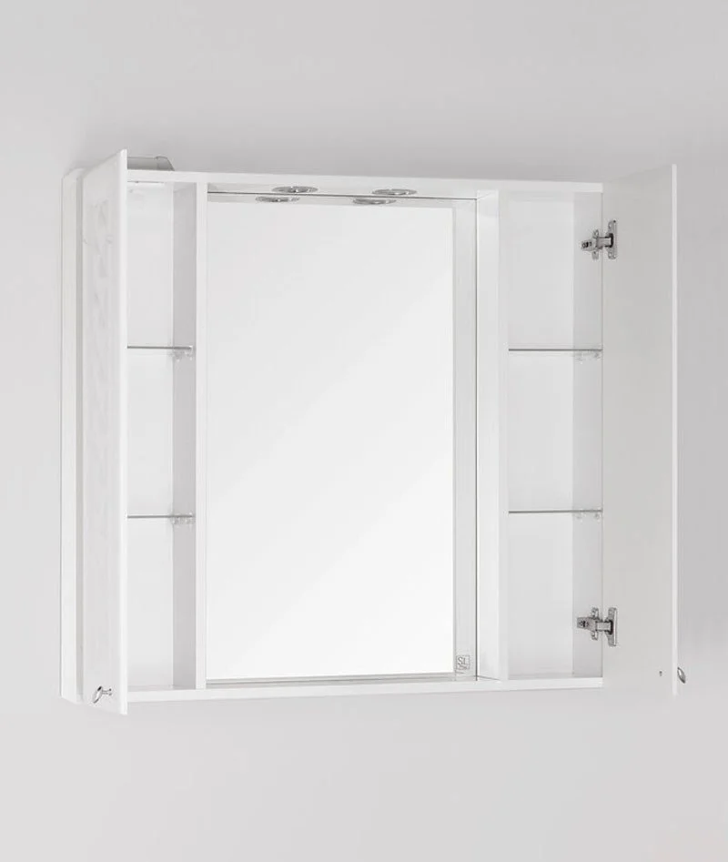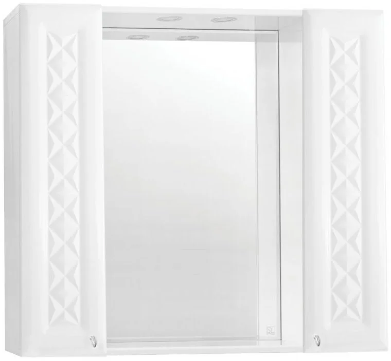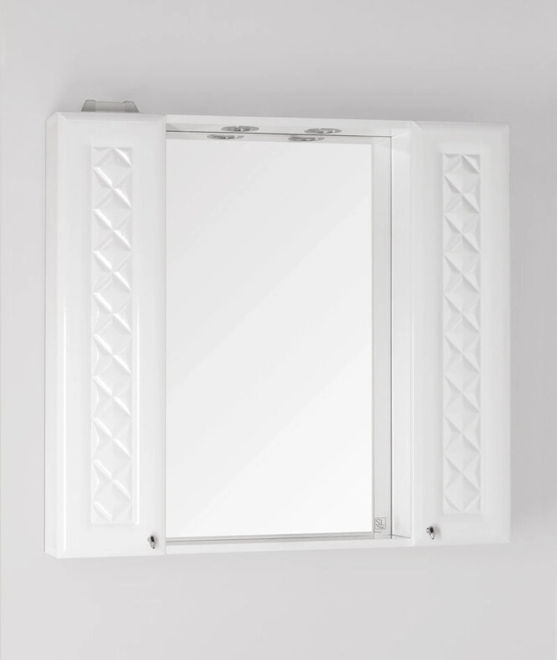 Зеркальный шкаф Style Line коллекции "Канна" с подсветкой; стеклянные полки с еврокромкой и прозрачными полкодержателями Hefele; лазерная гравировка фирменного логотипа; встроенные светильники в шкафах комплектуются выключателем, розеткой и трансформатором. Высокоточная обработка кромки фацетом 10 мм придает изделию законченный вид и защищает от порезов