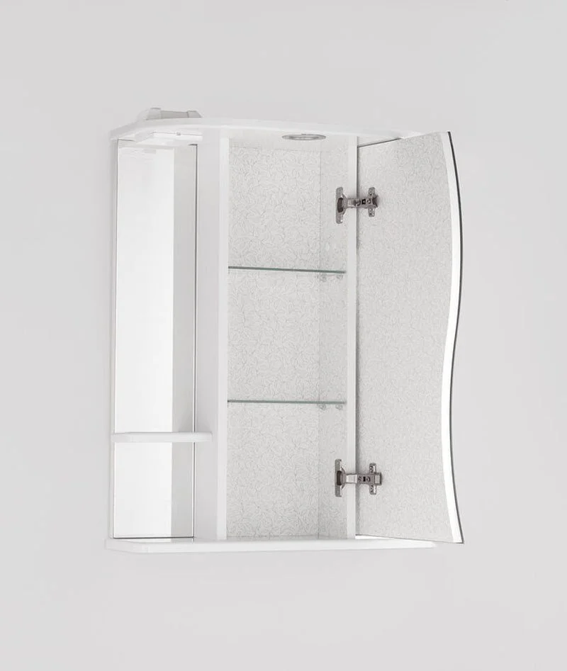 Зеркало-шкаф бренда "Style Line" коллекции "Лилия 55/С" с высокоточной обработкой кромки фацетом и подсветкой. Фурнитура - хром. Кромка зеркала "Лилия 55/С" зашлифована, что защищает от порезов. Лазерная гравировка фирменного логотипа. Край полочек имеет трапецевидную еврокромку. Эксклюзивный декор "Луино" - ламинация внутренней стороны изделия
