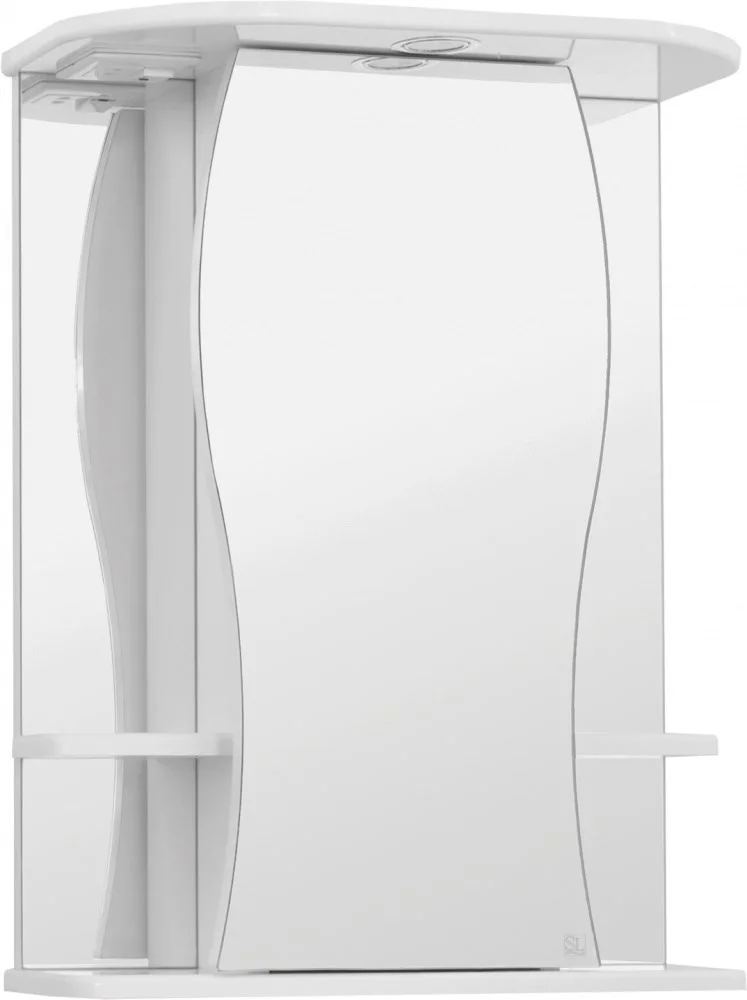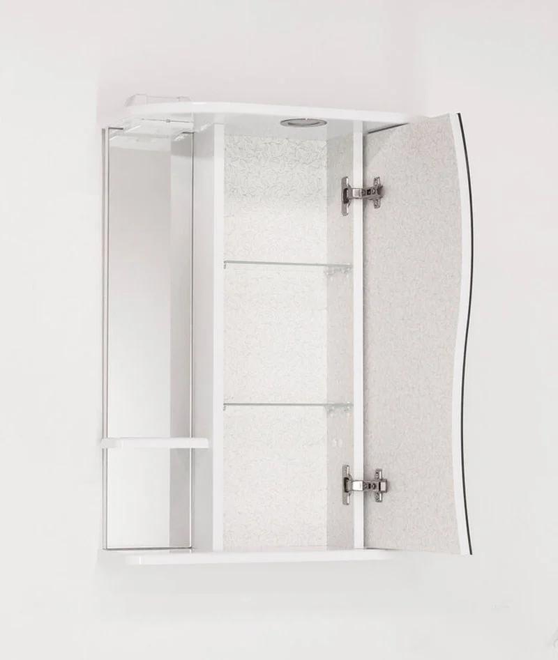 Зеркало-шкаф бренда "Style Line" коллекции "Лорена 55/С" с высокоточной обработкой кромки фацетом и подсветкой. Фурнитура - хром. Кромка зеркала "Лорена 55/С" зашлифована, что защищает от порезов. Лазерная гравировка фирменного логотипа. Край полочек имеет трапецевидную еврокромку. Эксклюзивный декор "Луино" - ламинация внутренней стороны изделия