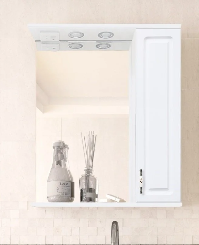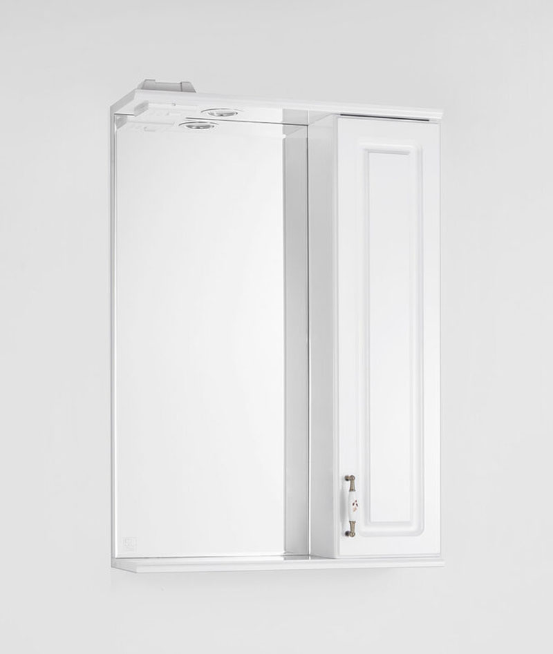 Зеркальный шкаф Style Lineколлекции "Олеандр-2" с подсветкой классического дизайна, декорированный ручками с керамическими вставками "под бронзу" с изящным рисунком. Стеклянные полки с еврокромкой и прозрачными полкодержателями Hefele; лазерная гравировка фирменного логотипа; встроенные светильники в шкафах комплектуются выключателем, розеткой и трансформатором. Высокоточная обработка кромки фацетом 10 мм придает изделию законченный вид и защищает от порезов