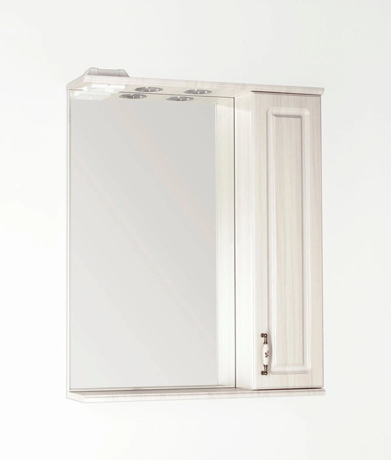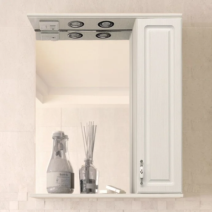 Зеркальный шкаф Style Lineколлекции "Олеандр-2" с подсветкой классического дизайна, декорированный ручками с керамическими вставками "под бронзу" с изящным рисунком. Стеклянные полки с еврокромкой и прозрачными полкодержателями Hefele; лазерная гравировка фирменного логотипа; встроенные светильники в шкафах комплектуются выключателем, розеткой и трансформатором. Высокоточная обработка кромки фацетом 10 мм придает изделию законченный вид и защищает от порезов