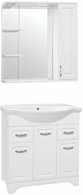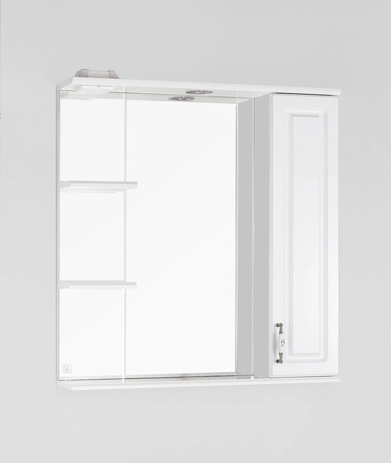 Зеркальный шкаф Style Lineколлекции "Олеандр-2" с подсветкой классического дизайна, декорированный ручками с керамическими вставками "под бронзу" с изящным рисунком. Стеклянные полки с еврокромкой и прозрачными полкодержателями Hefele; лазерная гравировка фирменного логотипа; встроенные светильники в шкафах комплектуются выключателем, розеткой и трансформатором. Высокоточная обработка кромки фацетом 10 мм придает изделию законченный вид и защищает от порезов
