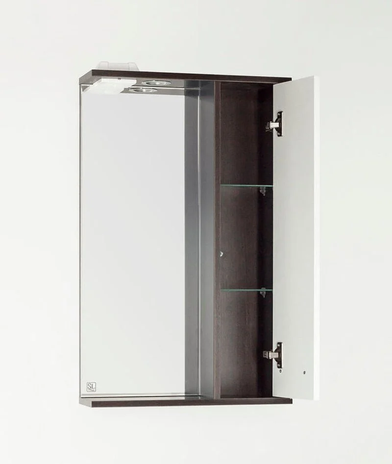 Зеркало-шкаф бренда "Style Line" коллекции "Панда 50/С Стиль(W)" с высокоточной обработкой кромки фацетом и подсветкой. Фурнитура - хром. Кромка зеркала "Панда 50/С Стиль(W)" зашлифована, что защищает от порезов. Лазерная гравировка фирменного логотипа. Край полочек имеет трапецевидную еврокромку. Эксклюзивный декор "Луино" - ламинация внутренней стороны изделия
