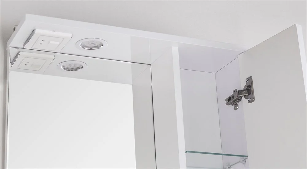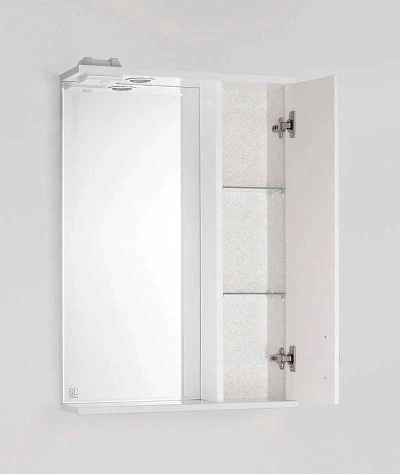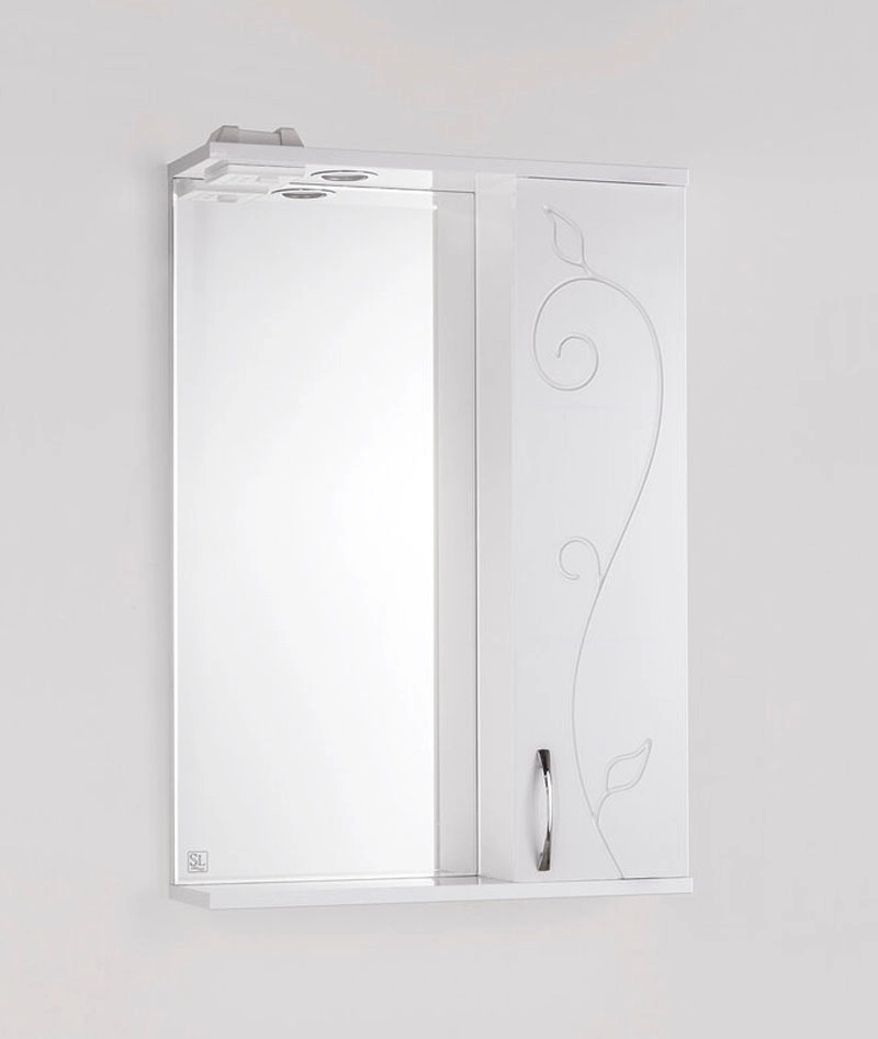 Зеркало-шкаф бренда "Style Line" коллекции "Панда 55/С Фьюжн" с высокоточной обработкой кромки фацетом и подсветкой. Фурнитура - хром. Кромка зеркала "Панда 65/С Фьюжн" зашлифована, что защищает от порезов. Лазерная гравировка фирменного логотипа. Край полочек имеет трапецевидную еврокромку. Эксклюзивный декор "Луино" - ламинация внутренней стороны изделия