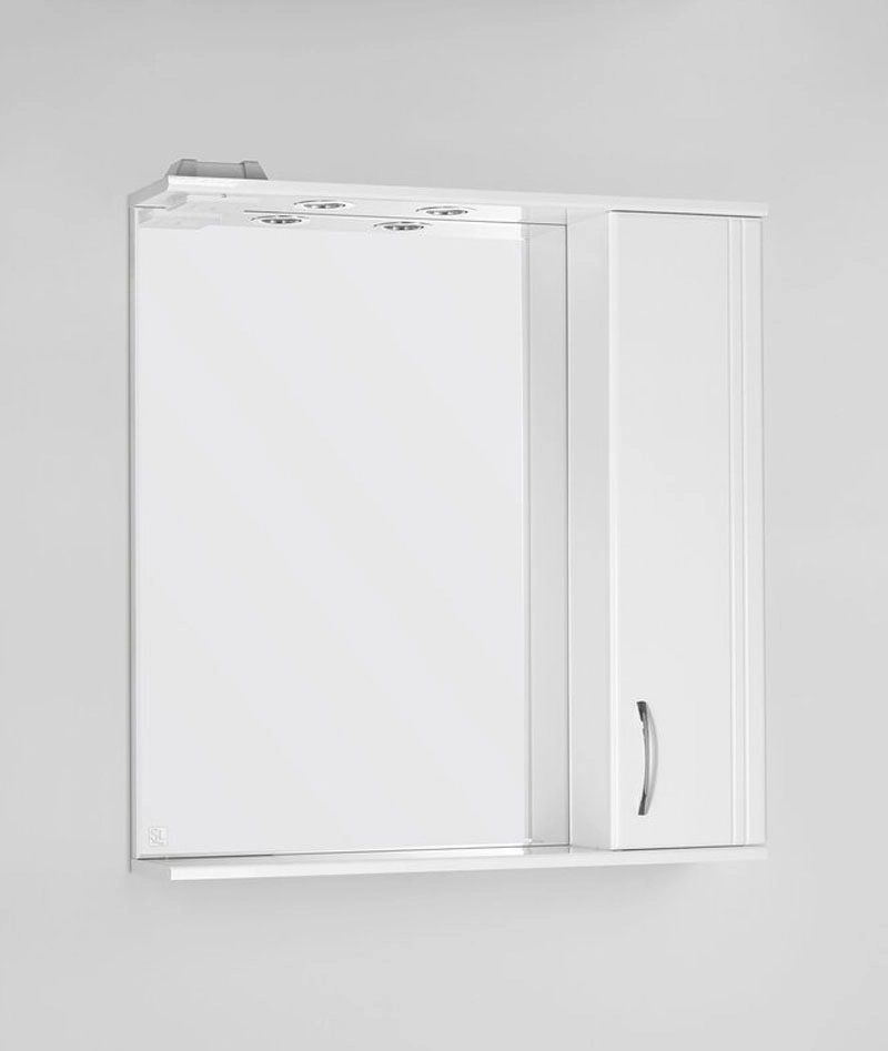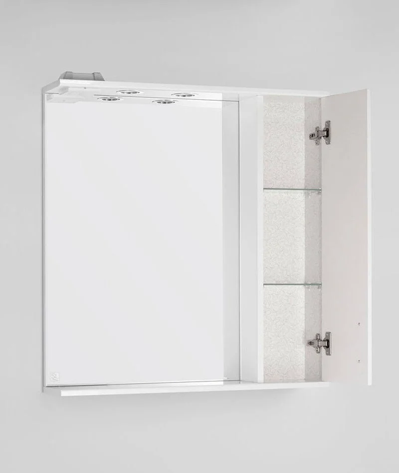 Зеркало-шкаф бренда "Style Line" коллекции "Панда 75/С" с высокоточной обработкой кромки фацетом и подсветкой. Фурнитура - хром. Кромка зеркала "Панда 75/С" зашлифована, что защищает от порезов. Лазерная гравировка фирменного логотипа. Край полочек имеет трапецевидную еврокромку. Эксклюзивный декор "Луино" - ламинация внутренней стороны изделия