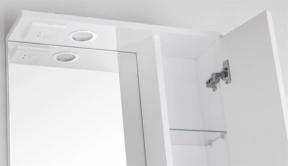 Зеркальный шкаф "Венеция" с подсветкой, элегантной фрезеровкой фасада и декоративными ручками, которые придают всей коллекции особый шарм . Фурнитура - хром, петли на дверцах с механизмом плавного закрывания. Стеклянные полки с еврокромкой и прозрачными полкодержателями Hefele; лазерная гравировка фирменного логотипа; встроенные светильники в шкафах комплектуются выключателем, розеткой и трансформатором. Высокоточная обработка кромки фацетом 10 мм придает изделию законченный вид и защищает от порезов