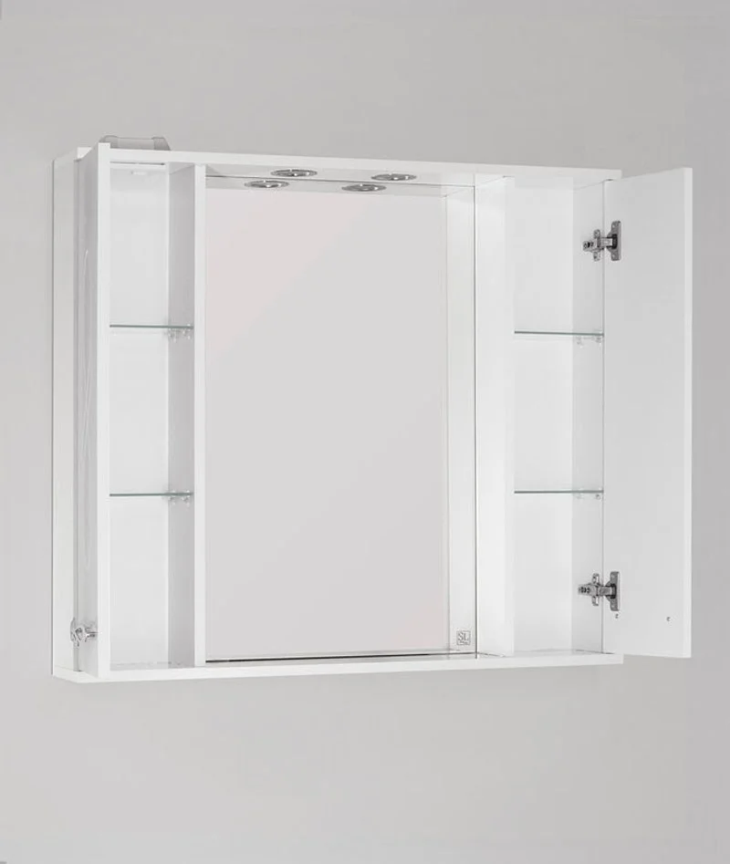 Зеркальный шкаф "Венеция" с подсветкой, элегантной фрезеровкой фасада и декоративными ручками, которые придают всей коллекции особый шарм . Фурнитура - хром, петли на дверцах с механизмом плавного закрывания. Стеклянные полки с еврокромкой и прозрачными полкодержателями Hefele; лазерная гравировка фирменного логотипа; встроенные светильники в шкафах комплектуются выключателем, розеткой и трансформатором. Высокоточная обработка кромки фацетом 10 мм придает изделию законченный вид и защищает от порезов