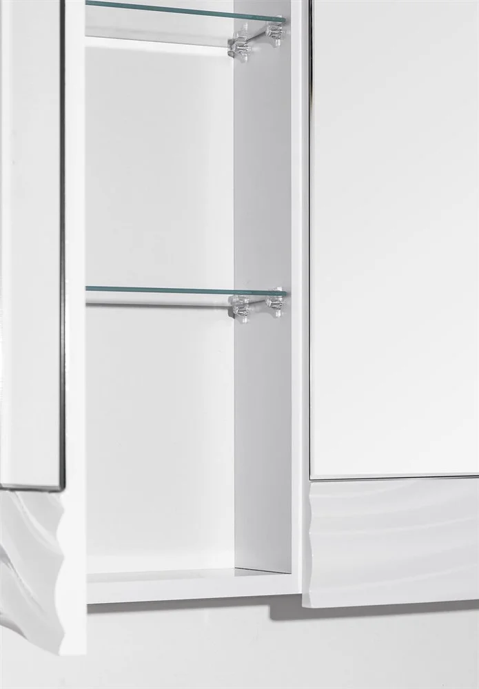 Зеркальный шкаф бренда "Style Line" коллекции "Вероника" с оригинальной 3D фрезеровкой фасада. Фурнитура - хром. Мягкие плавные линии необычной фрезеровки фасада создают оригинальные формы, способные украсить любой интерьер. Все материалы полностью влагостойкие. Боковины изделий в пленке в цвет фасадов. Кромка зеркала "Вероника" зашлифована, что защищает от порезов. Стеклянные полки с еврокромкой и прозрачными полкодержателями Hefele; лазерная гравировка фирменного логотипа