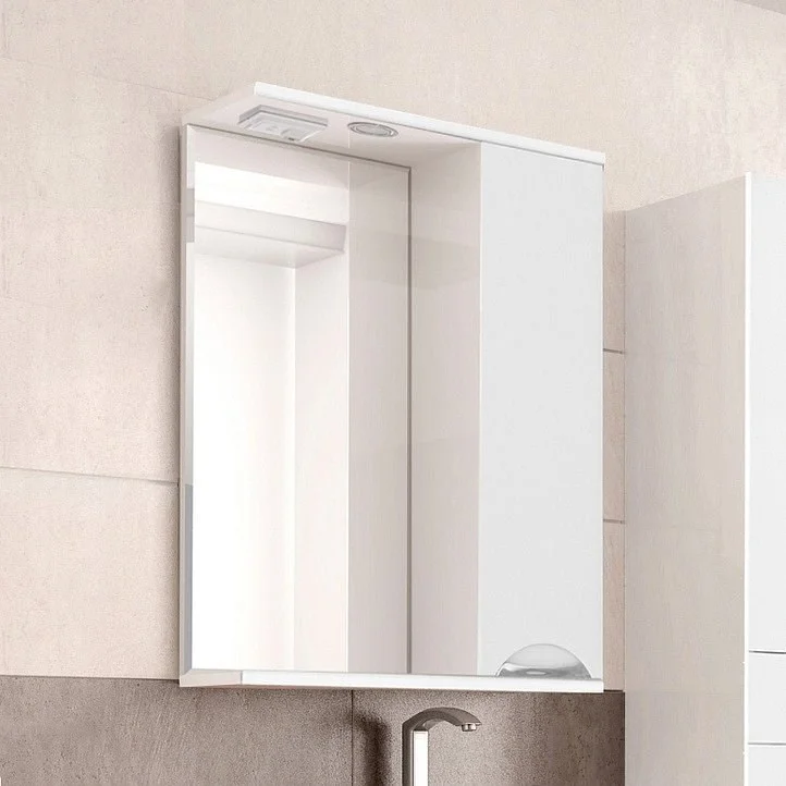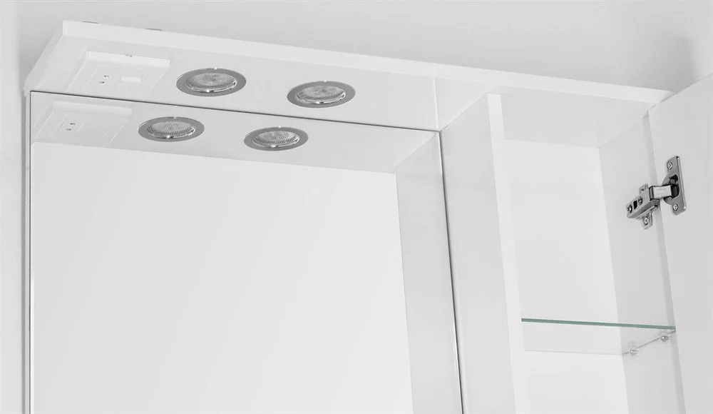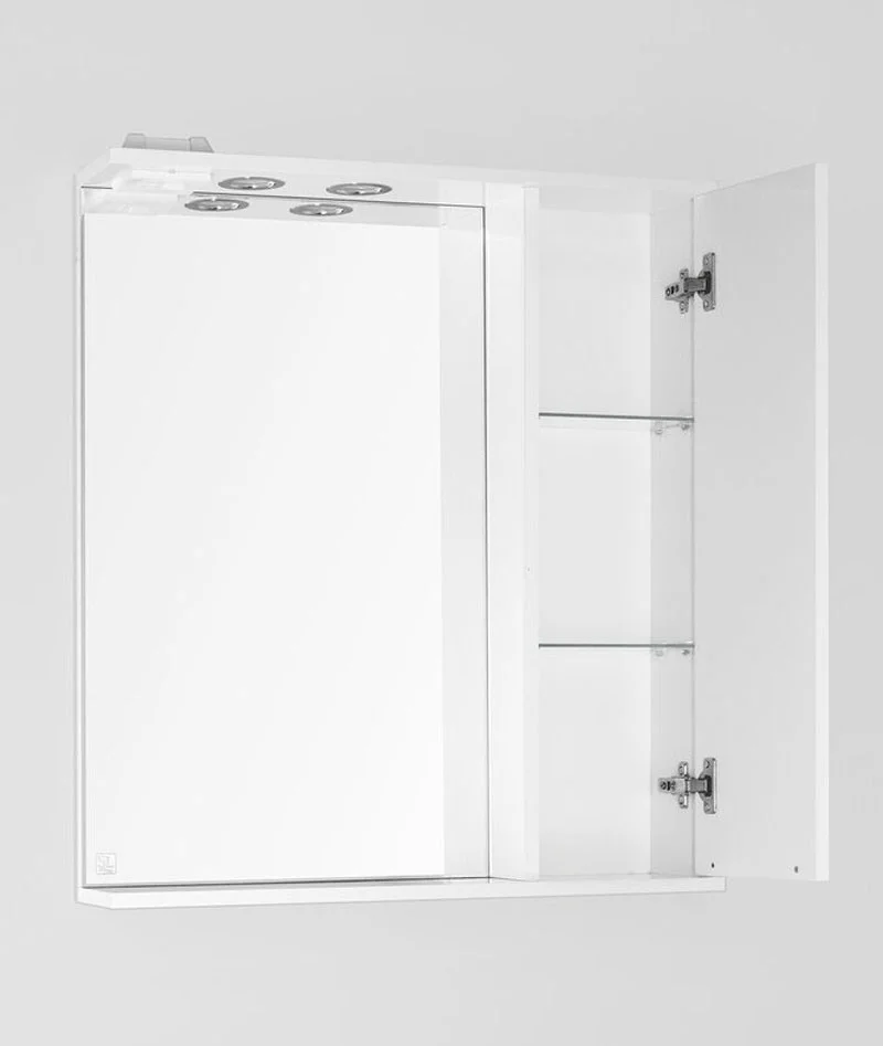 Зеркальный шкаф Style Line коллекции "Жасмин" с подсветкой и стильными врезными ручками. Фурнитура - хром. Высокоточная обработка кромки фацетом 10 мм придает изделию законченный вид и защищает от порезов. Еврокромка, обработанные полочки крепятся с помощью полкодержателей фирмы Hefele (Германия)
