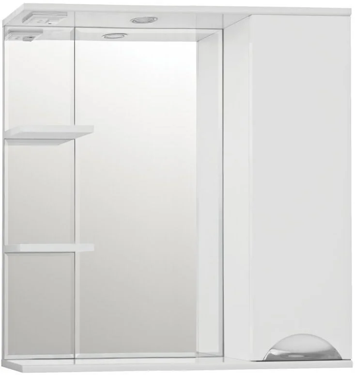 Зеркальный шкаф Style Line коллекции "Жасмин" с подсветкой и стильными врезными ручками. Фурнитура - хром. Высокоточная обработка кромки фацетом 10 мм придает изделию законченный вид и защищает от порезов. Еврокромка, обработанные полочки крепятся с помощью полкодержателей фирмы Hefele (Германия)