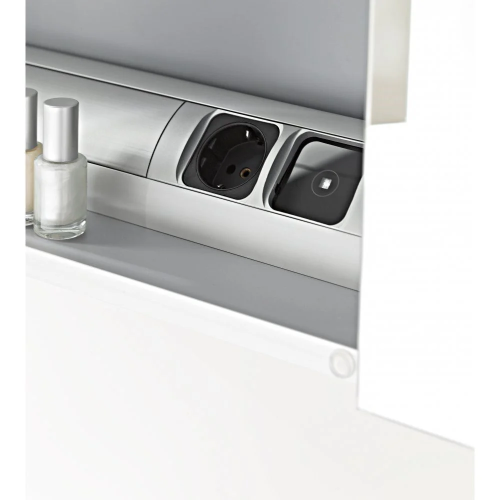 Зеркальный шкаф с подсветкой и изысканным внутренним оснащением.