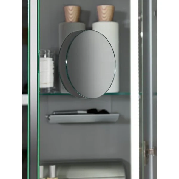 Благодаря двусторонним зеркальным дверям и корпусу с зеркалами, расположенными по всей поверхности, создается превосходный панорамный вид. Корпус с зеркалами, который сочетается с любыми цветами, придаст вашей ванной комнате больше глубины.