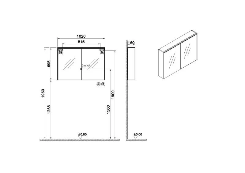 Зеркальный шкаф VitrA Core 100 см 66912 с подсветкой