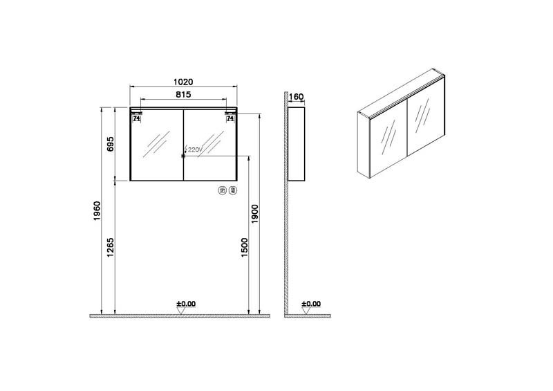 Зеркальный шкаф VitrA Core 100 см 66912 с подсветкой