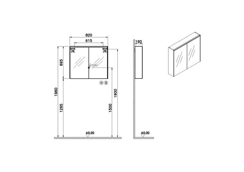 Зеркальный шкаф VitrA Core 80 см 66911 с подсветкой