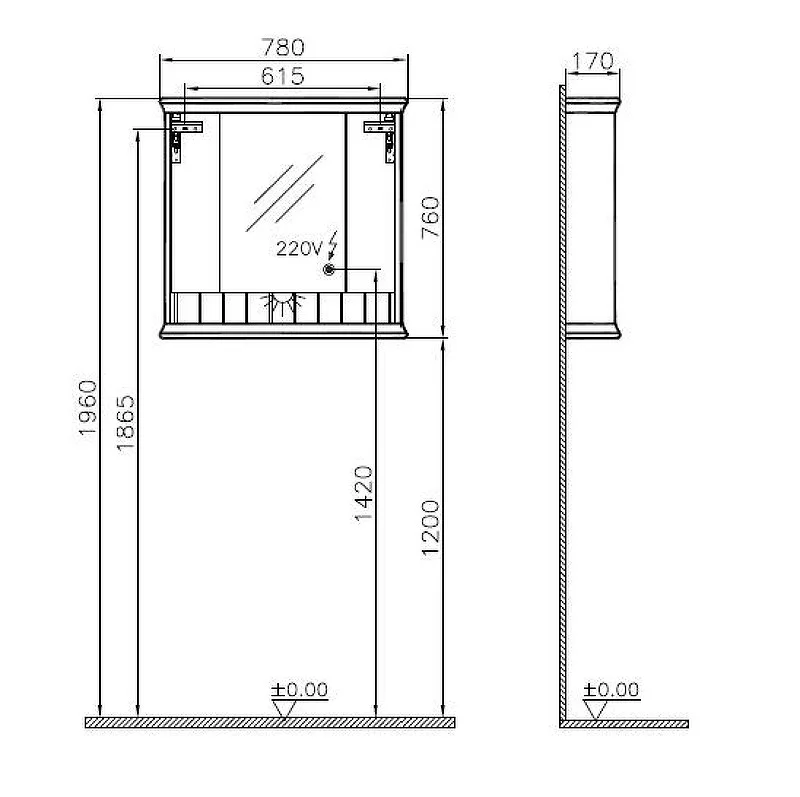 Зеркальный шкаф Vitra Valarte 80 см 62232 с LED подсветкой, серый матовый