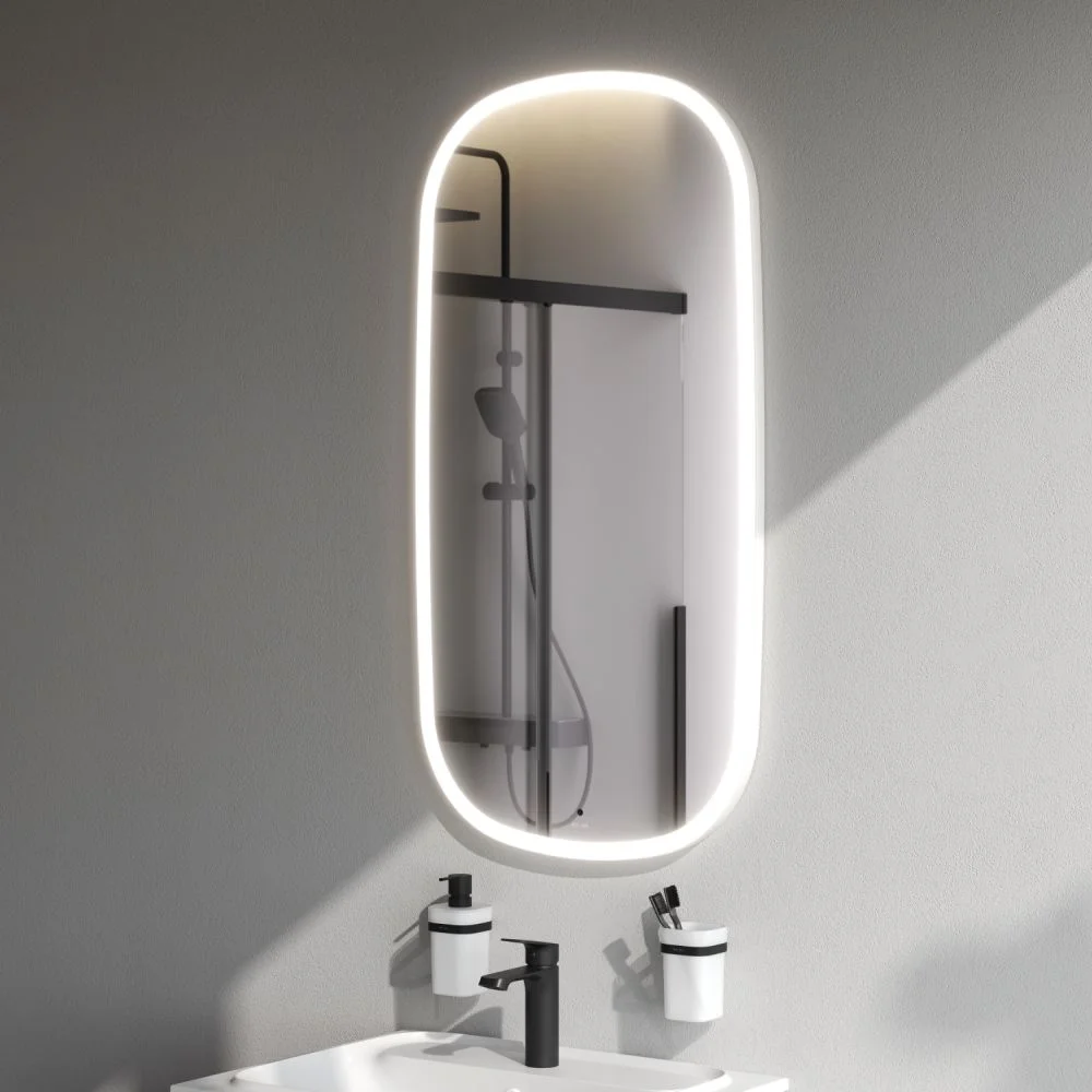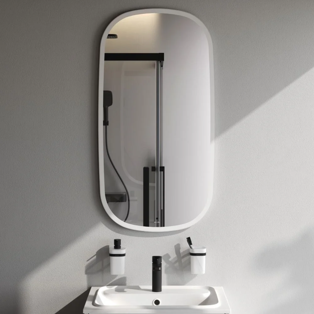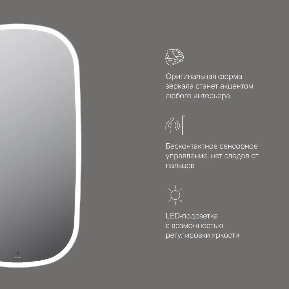 В качестве элемента LED-подсветки используется светодиодная лента которая создает мягкое и равномерное свечение по периметру всего зеркала. Управление подсветкой осуществляется при помощи бесконтактного сенсора. Сенсор нового поколения позволяет управлять включением/выключением и яркостью LED-подсветки без касания зеркального полотна. Зеркало дольше остается чистым. Зеркало поставля