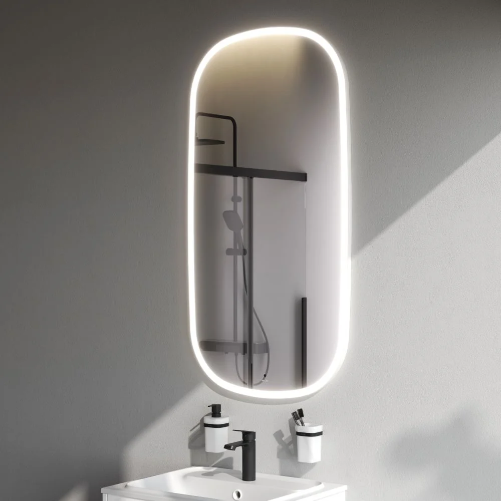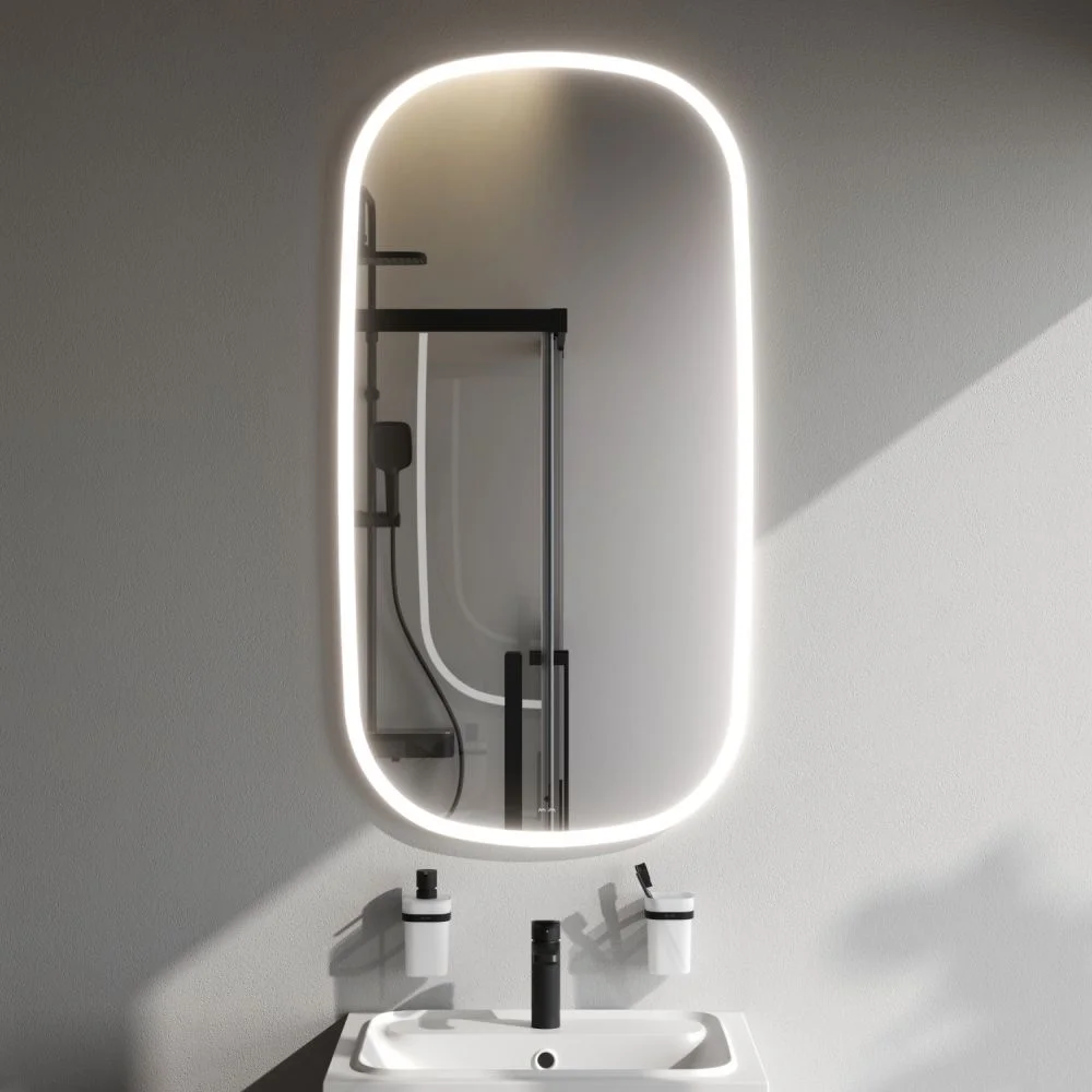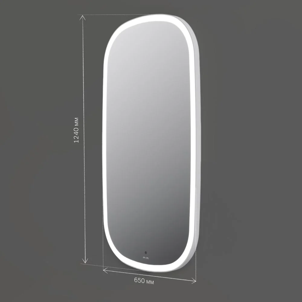 В качестве элемента LED-подсветки используется светодиодная лента которая создает мягкое и равномерное свечение по периметру всего зеркала. Управление подсветкой осуществляется при помощи бесконтактного сенсора. Сенсор нового поколения позволяет управлять включением/выключением и яркостью LED-подсветки без касания зеркального полотна. Зеркало дольше остается чистым. Зеркало поставляется в к
