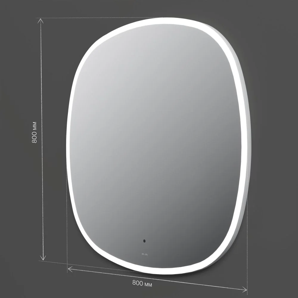 В качестве элемента LED-подсветки используется светодиодная лента которая создает мягкое и равномерное свечение по периметру всего зеркала. Управление подсветкой осуществляется при помощи бесконтактного сенсора. Сенсор нового поколения позволяет управлять включением/выключением и яркостью LED-подсветки без касания зеркального полотна. Зеркало дольше остается чистым. Зеркало поставляется в