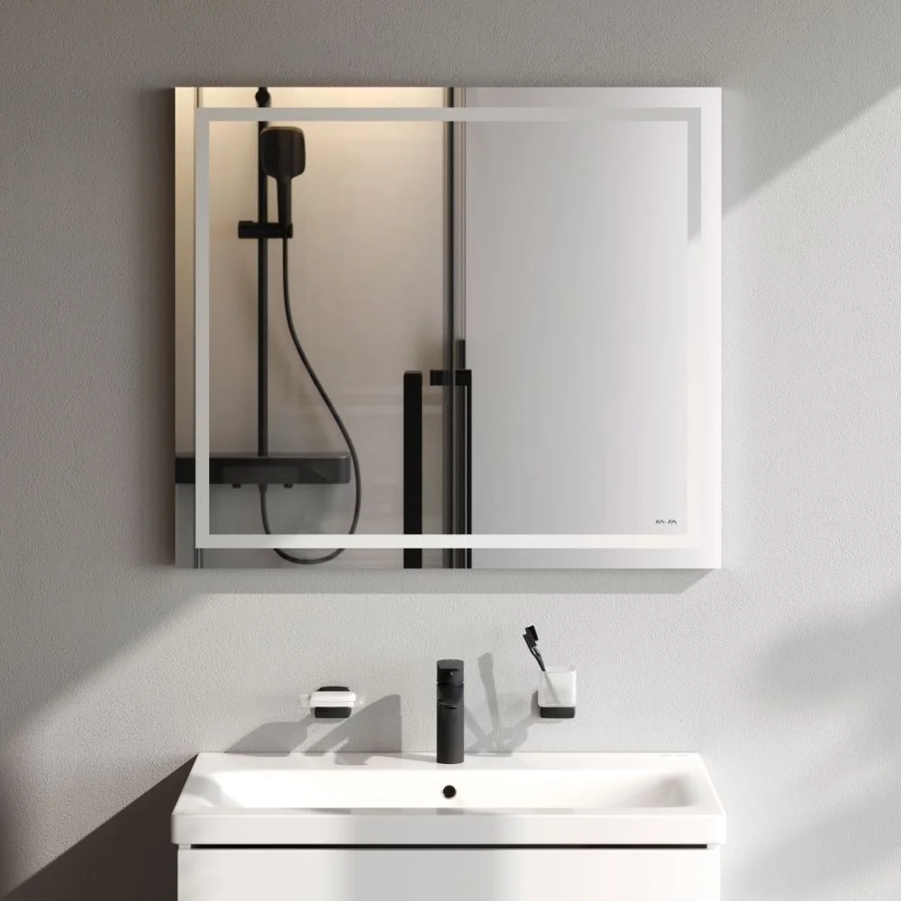 Скрытый механический выключатель сохраняет эстетическую целостность дизайна зеркала а также гарантирует отсутствие отпечатков пальцев на зеркальном полотне.