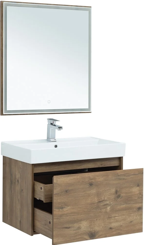 Зеркало Aquanet Nova Lite 60 шириной 60 см отлично вписывается в комплект с тумбой в цвете "дуб рустикальный" из влагостойкой ламинированной древесно-стружечной плиты. Выполняет сразу две функции: непосредственно зеркала и осветительного прибора, благодаря LED-подсветке по периметру.