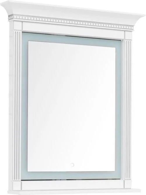 Зеркало Aquanet Селена 90 белый/серебро с эффектным патинированием серебром, с живописными украшениями в виде искусной фрезеровки и подобием капители, венчающих верхнюю часть изделия, как на античных колоннах, впечатляет с первого взгляда. Зеркало имеет встроенную LED-подсветку по периметру с сенсорным выключателем. Рамка шириной 90 см, в которую обрамлено зеркало, снабжена декоративными элементами и имеет небольшую полочку.