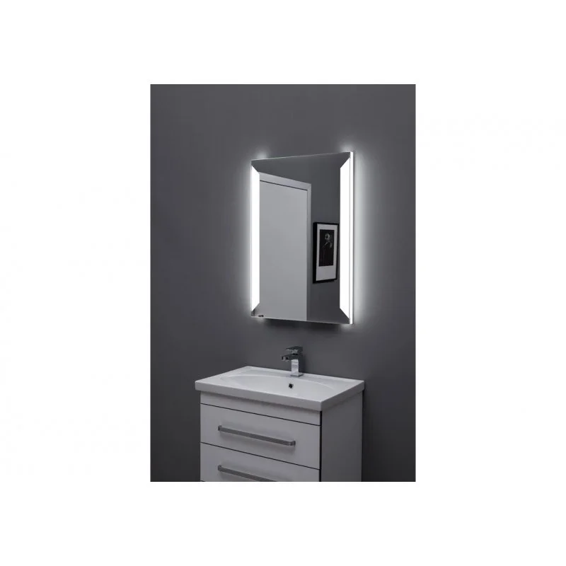 Зеркало Aquanet Сорренто 9085 LED составляет единое целое со светильником. Это четырехугольная подвесная конструкция размером 90х85 см, на которую нанесена зеркальная амальгама высокого качества для достижения лучшего отражающего эффекта. Причем, с двух сторон оставлены без зеркального покрытия участки трапециевидной формы. Внутри встроен LED-светильник, при включении которого свет проникает через боковые части конструкции, создавая подсветку как бы изнутри самого изделия и через участки, на которые не нанесено зеркальное покрытие. В результате светильник образует оригинальной формы светящуюся рамочку для зеркала. Она создает в ванной легкую подсветку, которая не режет глаза и излучает приятный свет, и, к тому же, придает самому изделию привлекательный вид. Включение/выключение светильника осуществляется с помощью инфракрасного датчика, к которому надо просто поднести руку. <