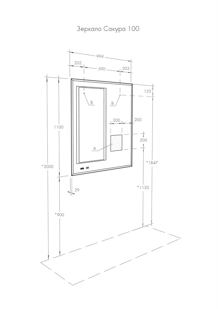 Зеркало Сакура в размере 100 см оснащено системой включения TOUCH, часами и системой ANTI-STEAM, которая предотвращает запотевание зеркала. LED-подсветка, выполненная в форме рамки в левой части зеркала, идеально сочетается с лаконичным дизайном тумбы и служит функциональным элементом освещения. Увеличенная высота зеркала 110 см создает в ванной комнате визуальный эффект расширения пространства.
