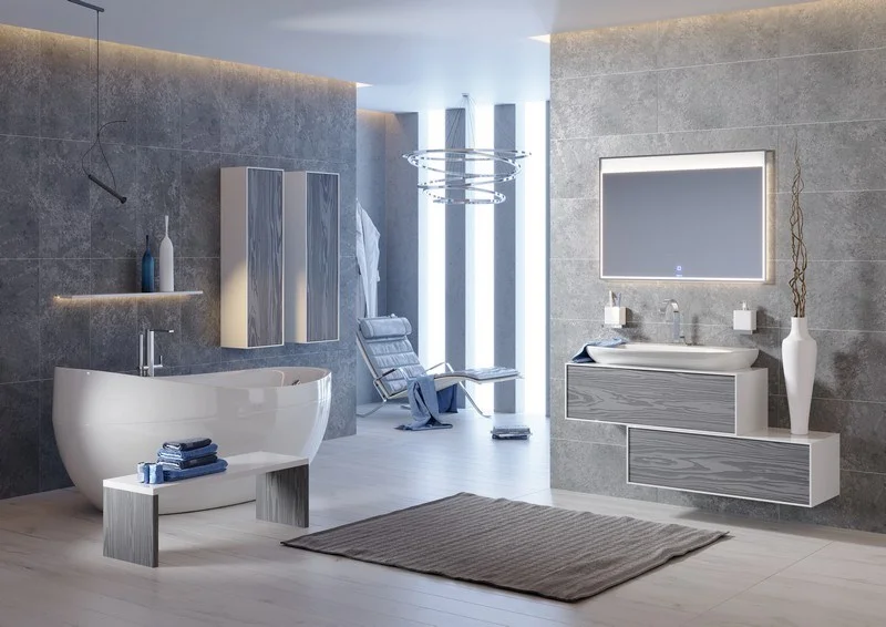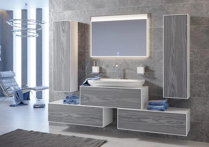 Зеркало со светодиодной подсветкой,сенсорный выключателем и системой обогрева, противодействующей его запотеванию.
