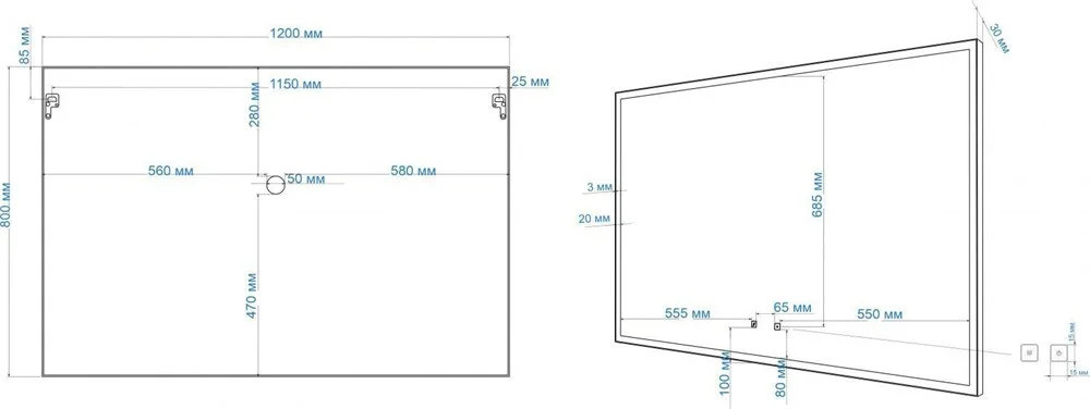 Зеркало ART&MAX AREZZO AM-Are-1200-800-DS-FC-H-Nero с подсветкой