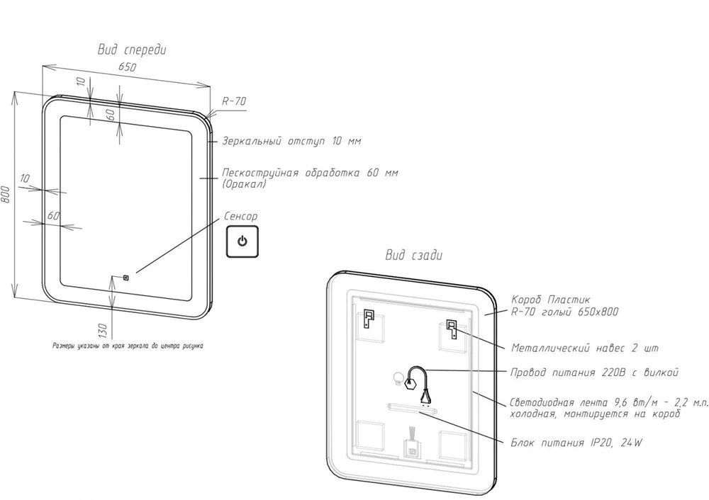 Зеркало ART&MAX LATINA AM-Lat-650-800-DS-F с подсветкой