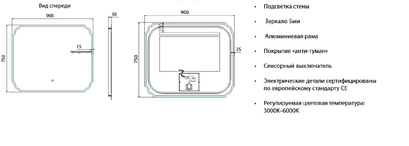 Зеркало ArtDecco Eternal Aura 90 AEA09075M с подсветкой