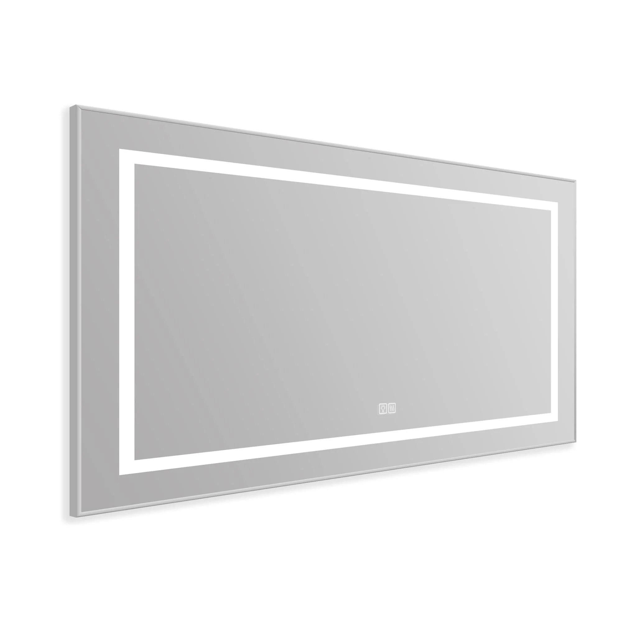 Серия подвесных зеркал KRAFT-TCH-WARM предлагает широкий выбор размеров и уникальные функции. Они оснащены двумя сенсорными кнопками: одна предназначена для управления подсветкой, а другая — для активации подогрева зеркала. Этот подогрев предотвращает запотевание, обеспечивая Вам всегда чистое и ясное отображение, что особенно приятно в условиях ванной комнаты.