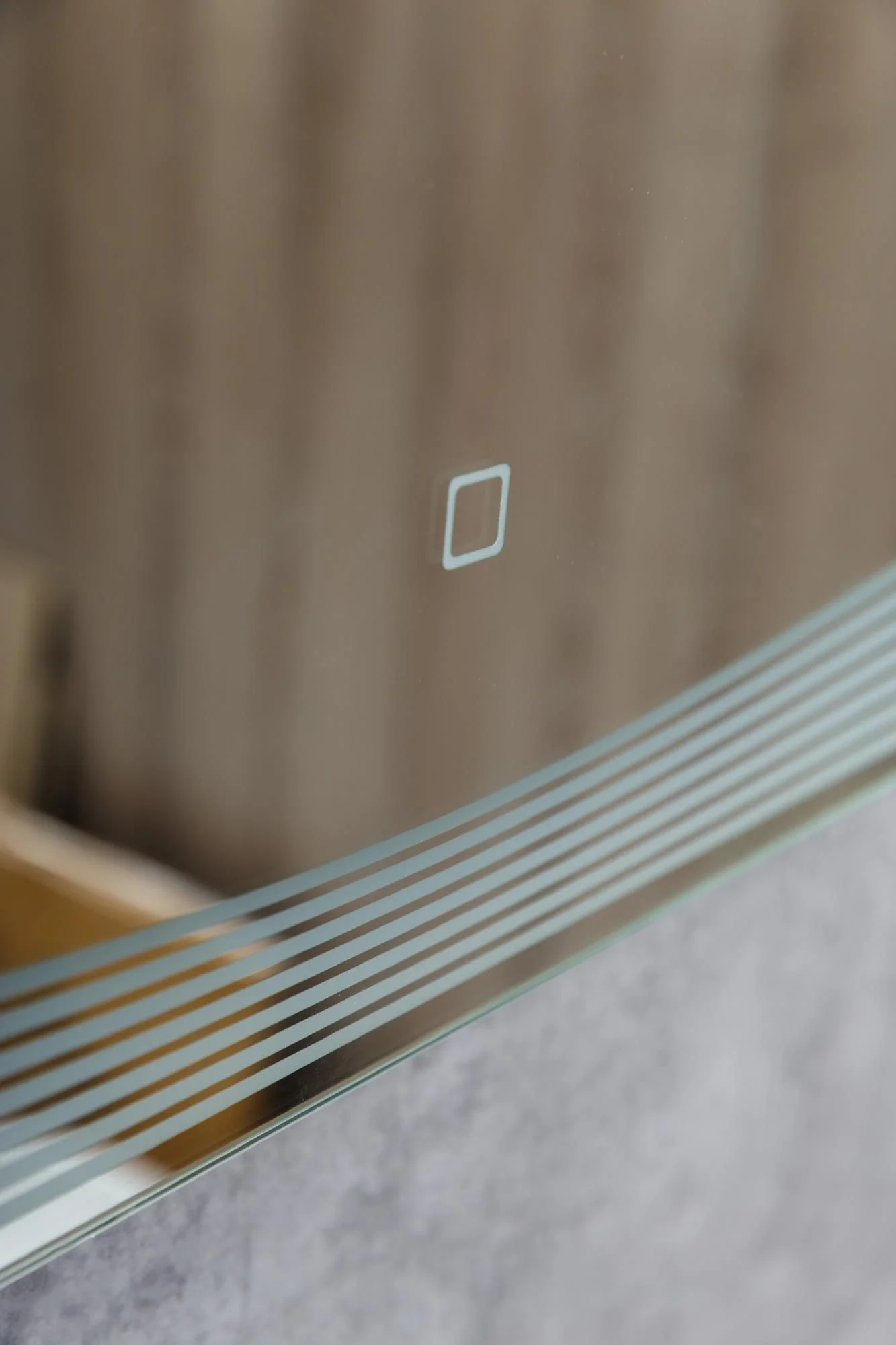 Зеркало с встроенным светильником и сенсорным выключателем.
