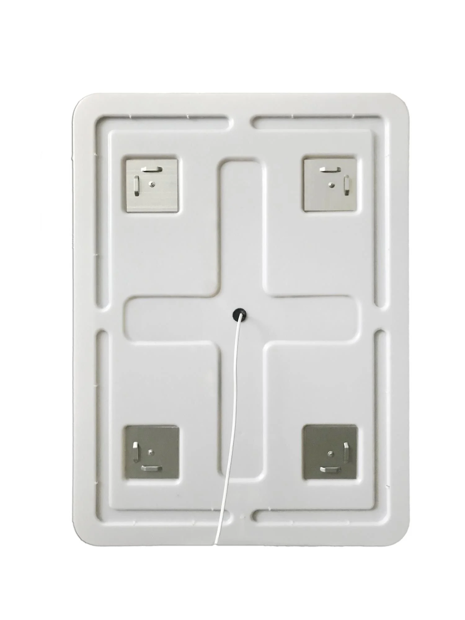 Зеркало с встроенным светильником и кнопочным выключателем. Декоративная светодиодная подсветка по всему периметру зеркала. Обратная сторона зеркала защищена пластиковой панелью от попадания воды и влаги.Универсальное расположение крепежных пластин позволяет вешать зеркало в двух плоскостях.