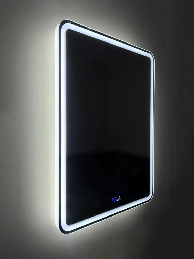 Зеркало оборудовано блютуз-модулем с микрофоном и аккустическими системами и двухсенсорным блоком управления.
