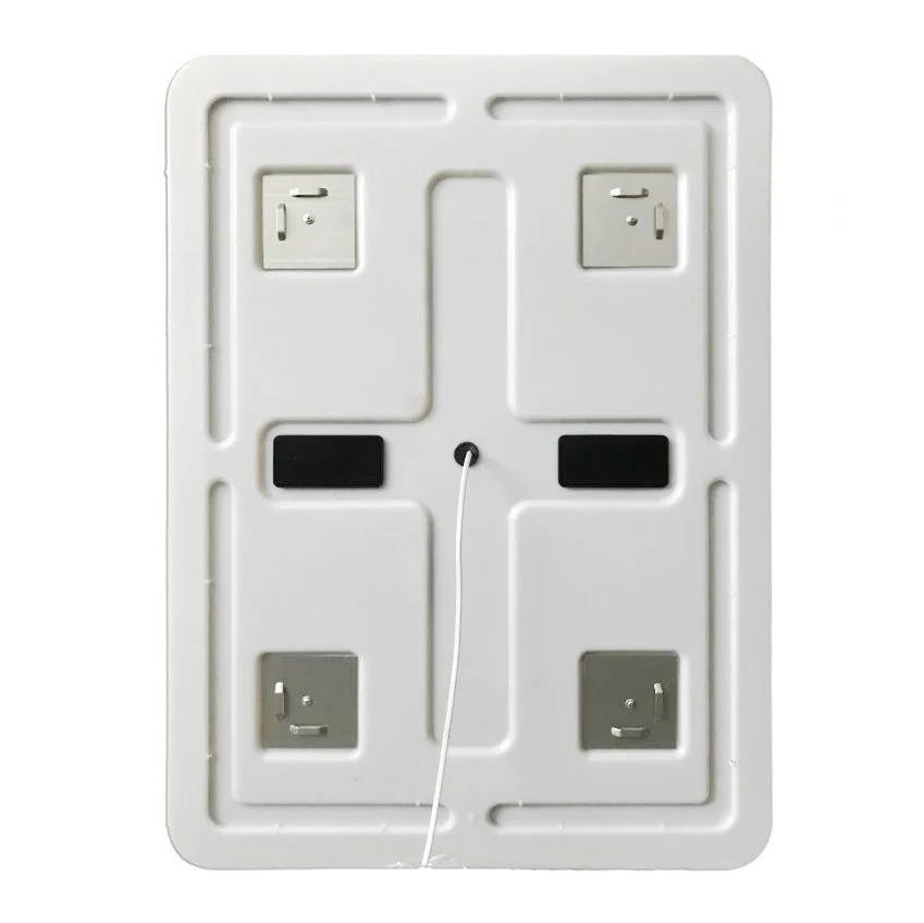 Обратная сторона зеркала защищена пластиковой панелью от попадания воды и влаги. Сенсор со значком питания ондократным нажатием включает и выключает подсветку, сенсор с изображением телефонной трубки двойным нажатием активирует ответ на телефонный звонок, а однократное нажатие сбрасывает входящий вызов или прекращает текущее соединение.