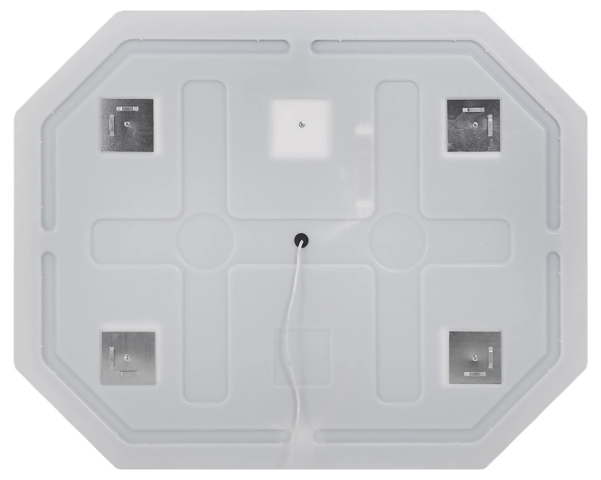Обратная сторона зеркала защищена пластиковой панелью от попадания воды и влаги.