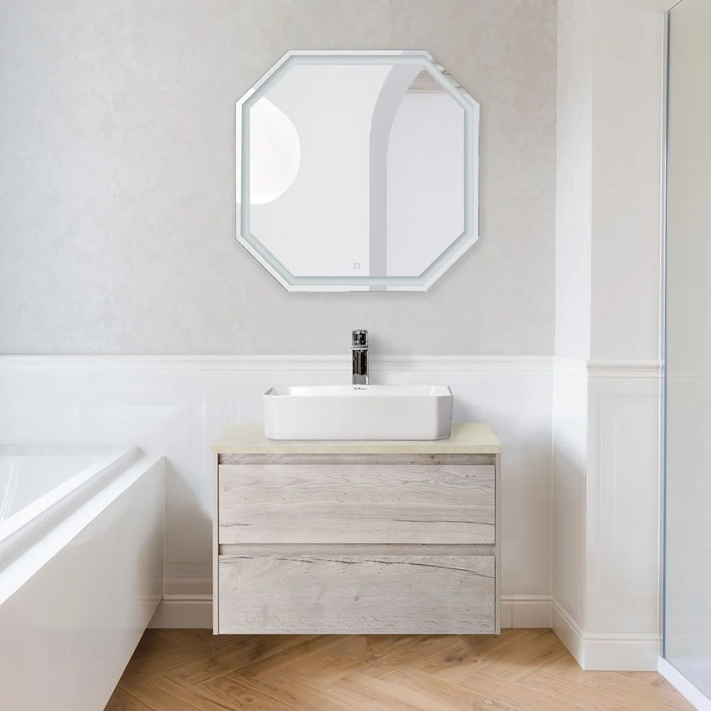 Зеркало с встроенным светильником и сенсорным выключателем.
