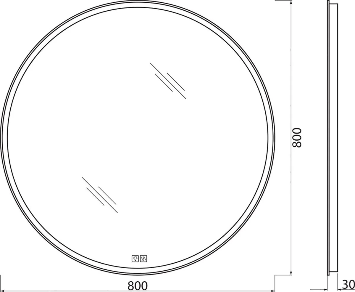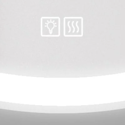 На зеркале установлен двойной сенсор, блок увеличеной мощности, с помощью которого производиться отдельное включение подсветки и подогрева зеркала. Однократное нажатие сенсора включает или выключает функцию, соответственно символу на зеркале, длительное удержание выключает подсветку клавиш сенсора.