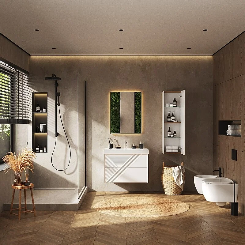 Led-зеркало с функцией подогрева, 1 матовый Бесконтактный датчик вкл/выкл. Быстрый монтаж.