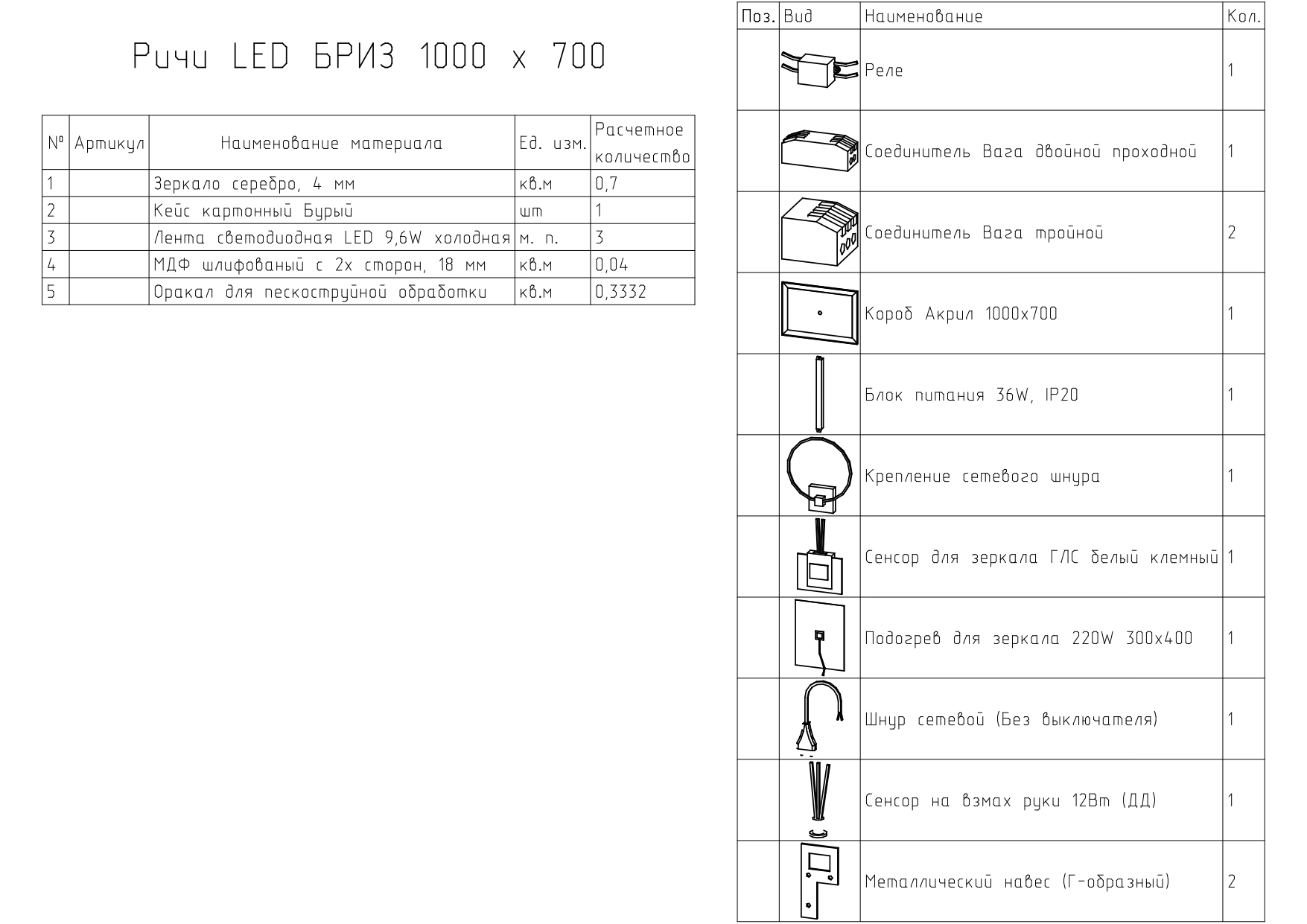 Зеркало BRIZ Риччи 100, 360-01-44100-00 00 светодиодная подсветка, с сенсорным выключателем