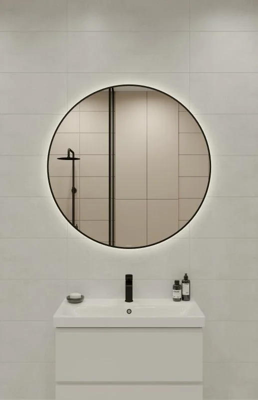 Зеркало Cersanit ECLIPSE (A64149) 100x100 с подсветкой круглое в черной рамке 64149
